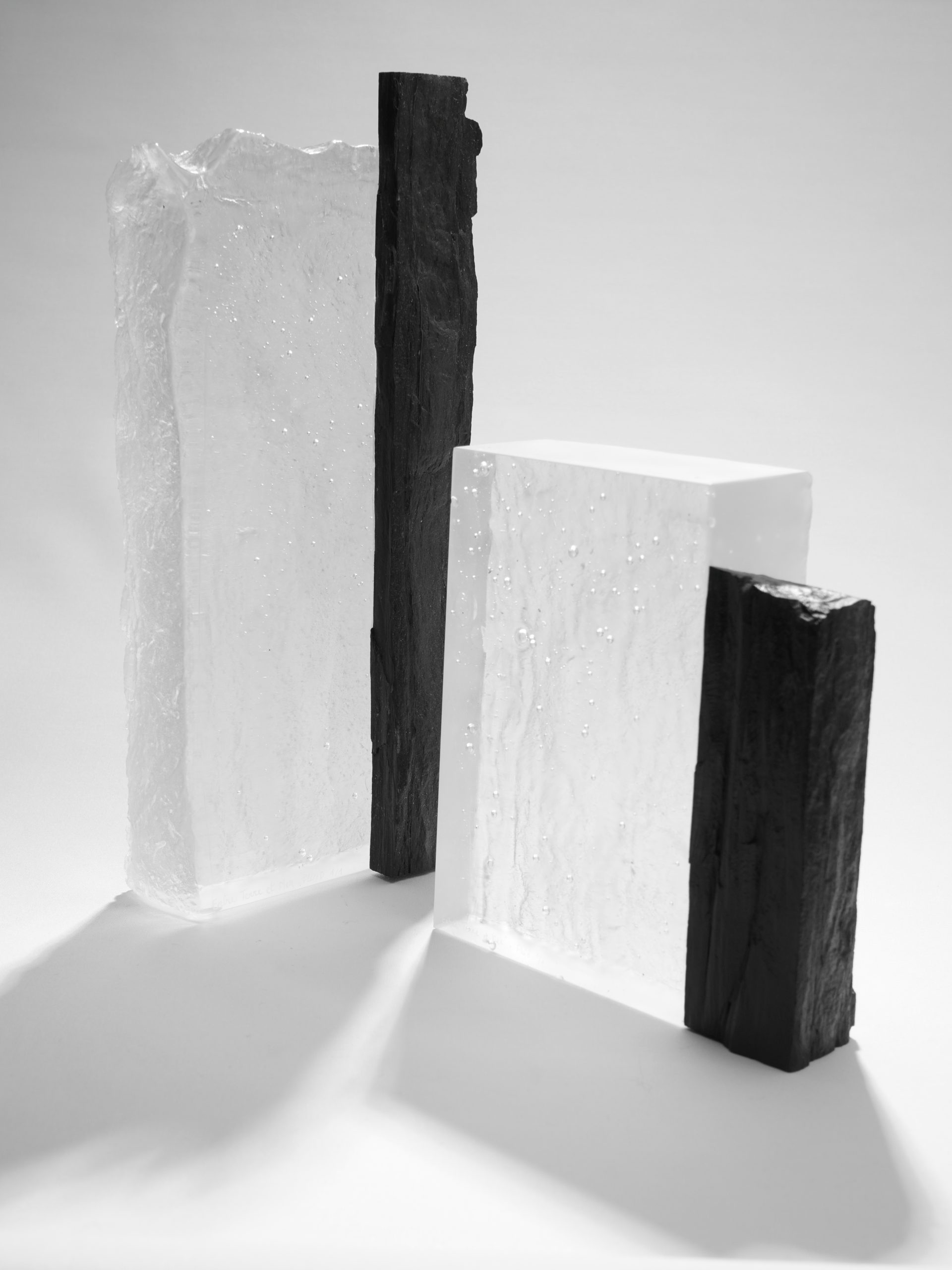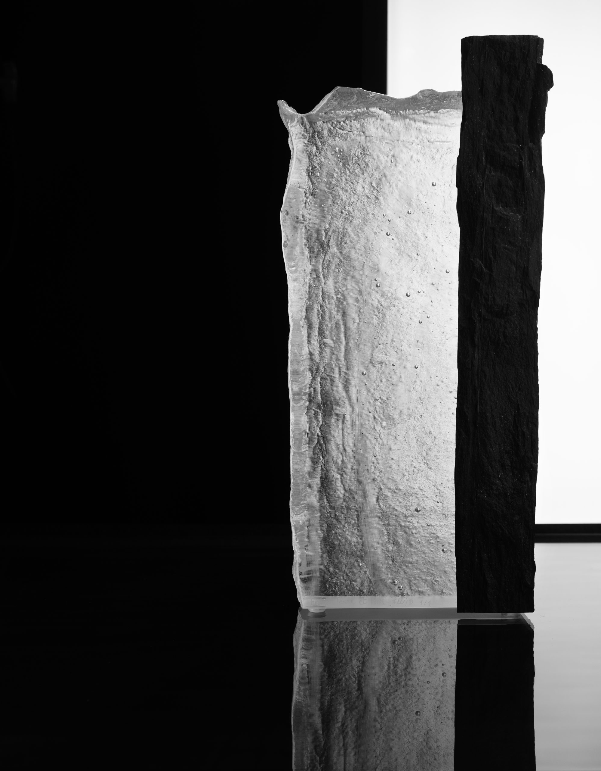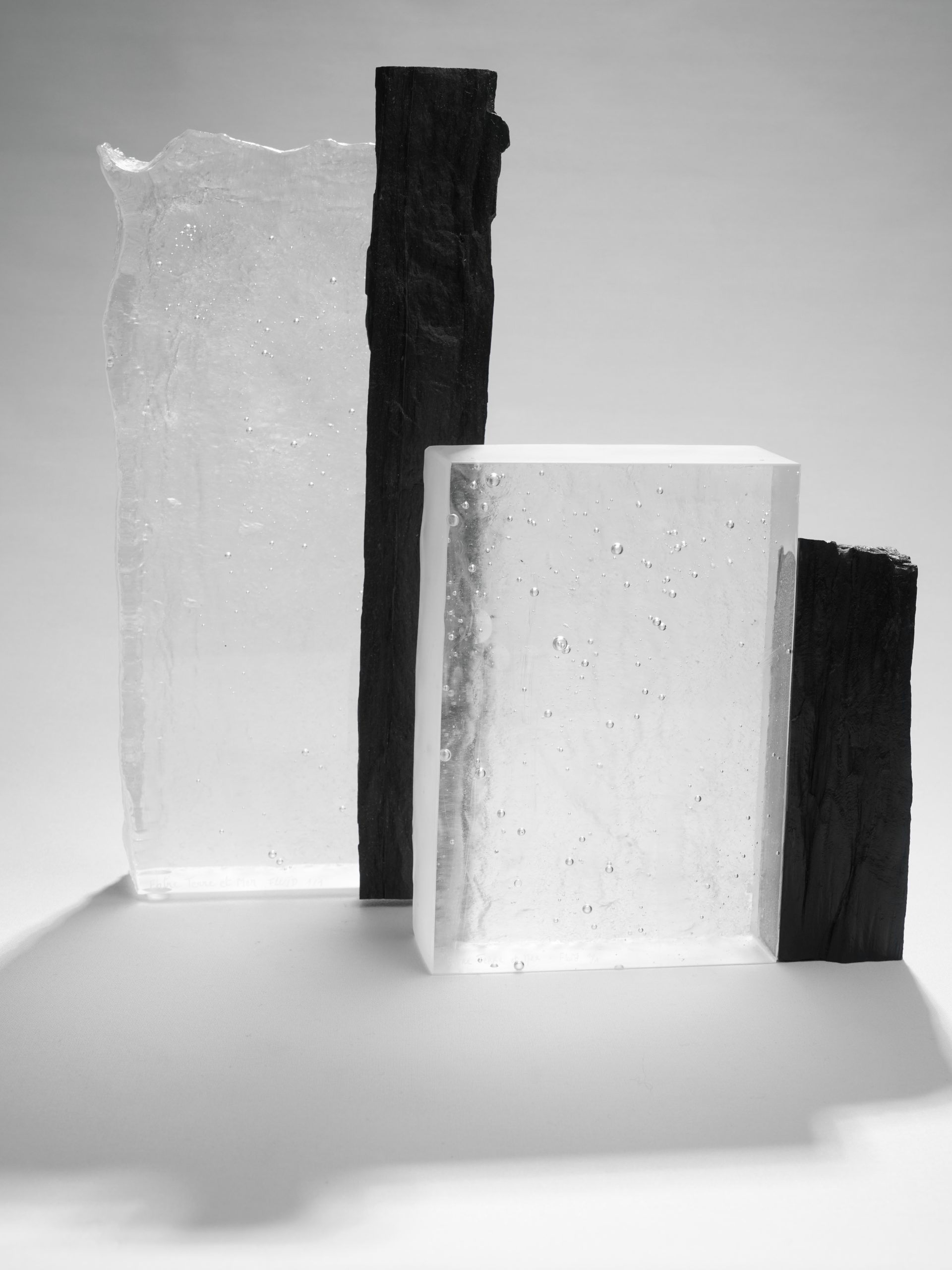 Chaque sculpture de la collection « Entre Terre et Mer » est une pièce unique en verre massif, façonnée à la main dans notre atelier de Belle-Île-en-Mer. Elle capture l’équilibre subtil entre la puissance des éléments et la délicatesse du verre, en associant la transparence et la légèreté du verre massif à la force brute et minérale du schiste, roche emblématique de notre île.